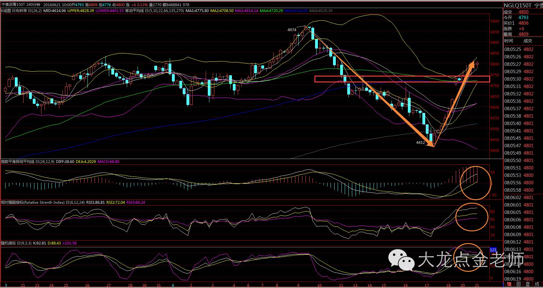 大龙点金:6.21油价再度触及50美元,决定命运的时刻来了 基本消息面: 1、据报道,油价在未来五个月将出现进一步下滑的可能性,年内将跌至40美元/桶。但这一切均跟英国退欧公投,美联储货币政策等“借口”无关,真正的杀手是炼油厂。 2、英国退欧剧情跌宕起伏,留欧派重占上风后有效提振了市场的风险意愿,英镑大涨美元走弱美布两油涨幅均近3%,公投结果出来之前,油市走势可能都受美元走向推动。但摩根士丹利警告,一旦英国退欧,油价将面临“大麻烦”。 大龙消息面解读: 原油期货呈现低迷态势可以归结于本周的英国“退欧”公投,这次公投将决定英国是否继续留在欧盟,也将改变投资者对美联储货币政策的预期和以及产生经济影响,同时也或将影响未来的能源需求。以上这些事实因素更像是为油价的下跌找“借口”而不是真正的原因。相反,原油需求才是罪魁祸首。如果当前市场原油没有出现过剩的状态,那么调节原油过剩就是一个伪命题,而美国能源信息署对机动车汽油和馏分燃料的供应的描述是‘远高于平均水平的上限’。如果英国投票留在欧盟,预计油价会小幅反弹,但上周价格可能已经消化这部分的影响。总而言之,如果结果是退欧,油价将面临更大的下行风险。 日内沥青行情分析: 日线方面,昨日收取了一根阳柱,5日均线小幅上扬,10日和20日均线粘合平行运行,布林带开口后走平,行情运行于布林中轨上下方。附图MACD快慢线死叉向下发散运行,绿柱放量有所减弱,KDJ行情指标三线金叉慢幅向上发散;四小时方面,5日上穿10日和20日均线,就K线形态而言,高位出现十字星形态,开始出现顶部背离,KDJ指标三线在超买平行运行,有形成死叉之势,附图MACD金叉上行,红色动能柱放量,一旦价格突破阻力位置,进一步的走高将很快发生,短线有上涨趋势;小时图中,价格依旧是踩着MA10与MA5均线做震荡上行,当前来看,MA5与MA10也有了逐渐变缓的迹象,布林带有明显的缩口迹象,MACD附图指标中,快慢线形成交叉后开始逐步下移,绿色动能柱小幅度放量,KDJ随机指标依旧在超买区粘合运行。 综上所述,当前我们需要关注的就是下方4720与4740位置的小支撑带,依旧上方4870位置的阻力,操作上的话还是以多单为主,采取破位追单的形式 日内沥青操作建议: 1、建议下方4720-4740位置操作多单,止损35个点,上看目标4780-4800 2、若价格成功击穿4800一线,多单可继续持有带好移动保本损,上看至4850-4870 3、建议可以在上方4870-4850位置轻仓操作空单,止损25个点,下看目标4800 4、行情瞬息万变,如有变故请及时咨询本人 大龙财经早餐: